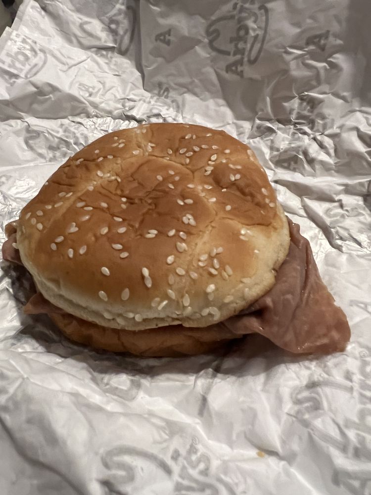 Thinly-sliced, smoked ham with melty Swiss cheese on a sesame bun. TM & 2025 Arbys IP Holder, LLC.Visit arbys.com for nutritional and allergen information.